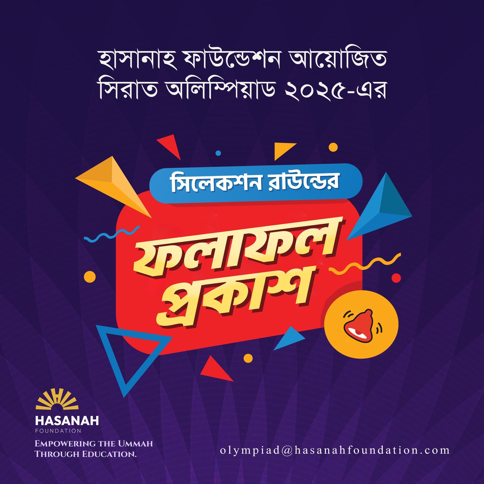 ঢাকা, ২৩ আগস্ট ২০২৫: হাসানাহ ফাউন্ডেশন আয়োজিত ‘সিরাত অলিম্পিয়াড-২০২৫’ এর সিলেকশন রাউন্ডের ফলাফল প্রকাশিত হয়েছে। পরীক্ষাটি সুষ্ঠুভাবে সম্পন্ন হওয়ার পর শনিবার (২৩ আগস্ট) এক বিজ্ঞপ্তির মাধ্যমে ফল প্রকাশ করা হয়।
