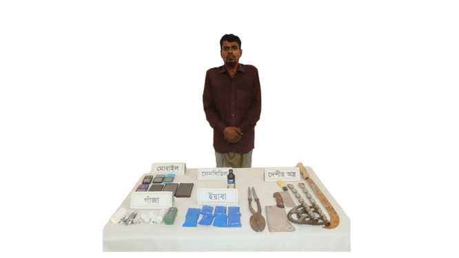 অভিযানকালে তার কাছ থেকে ১ হাজার ৮৯৭ পিস ইয়াবা, ২০ গ্রাম গাঁজা, ১ বোতল ফেনসিডিল, দুটি চাইনিজ কুড়াল, একটি রামদা, দুটি চাপাতি ও একটি সিজার জব্দ করা হয়।