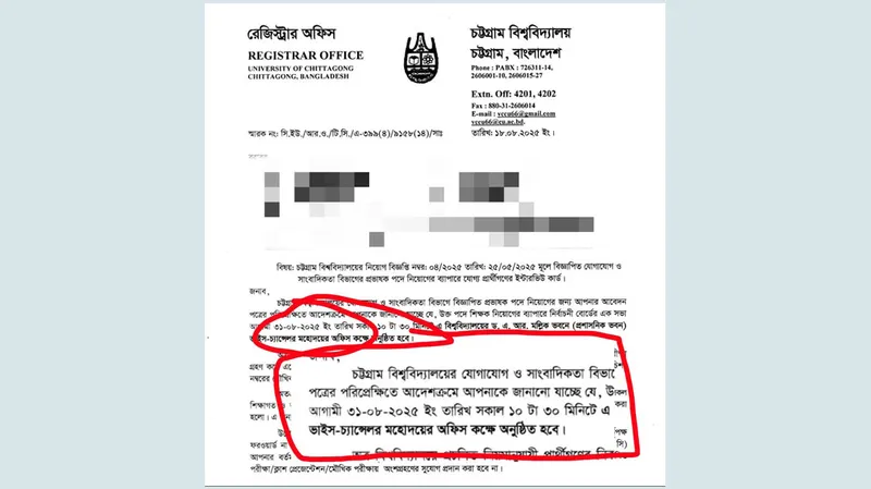 চট্টগ্রাম বিশ্ববিদ্যালয়ে (চবি) শনিবার রাত থেকে শুরু হওয়া সংঘর্ষের মধ্যেও রোববার সকাল থেকে দুপুর পর্যন্ত উপাচার্য অধ্যাপক ড. মুহাম্মদ ইয়াহইয়া আখতার নিয়োগ বোর্ডের মৌখিক পরীক্ষা পরিচালনা করেছেন। সংঘর্ষে শিক্ষার্থী, শিক্ষক ও কর্মকর্তারা আহত হন, ক্যাম্পাস অচল হয়ে পড়ে, ধানক্ষেতে শিক্ষার্থীদের কুপিয়ে আহত করার ভিডিও সামাজিক যোগাযোগমাধ্যমে ছড়িয়ে পড়ে।
