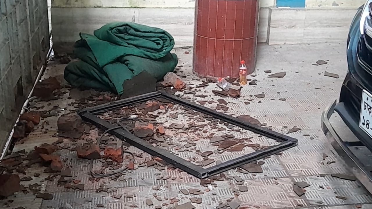 প্রত্যক্ষদর্শীরা জানায়, মুখ বাঁধা অবস্থায় ১০-১৫ জন দুষ্কৃতিকারী বাড়ির জানালায় পাটকেল নিক্ষেপ করে। এতে জানালার কাঁচ ভেঙে যায়। নিচতলার গ্যারেজে রাখা দুটি ব্যক্তিগত গাড়িও ক্ষতিগ্রস্ত হয়।