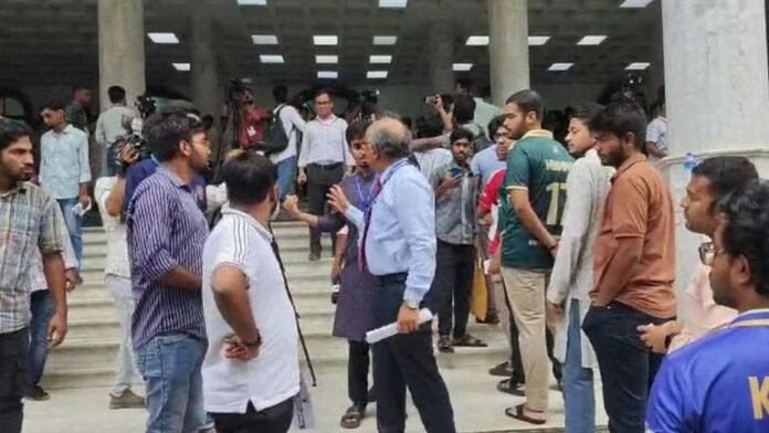 ঢাকা বিশ্ববিদ্যালয় কেন্দ্রীয় ছাত্র সংসদ (ডাকসু) নির্বাচনে ভোটগ্রহণ চলাকালীন ভোটকেন্দ্রে প্রার্থীরা সরাসরি ভোট চাইতে গেলে রিটার্নিং কর্মকর্তা তাদের কেন্দ্র থেকে সরিয়ে দিয়েছেন।