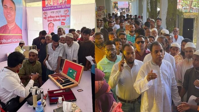 ভোলার চরফ্যাশন ও মনপুরায় অসহায় ও দরিদ্র মানুষের জন্য পাঁচ দিনব্যাপী বিনামূল্যে চক্ষু চিকিৎসা ক্যাম্প আয়োজন করেছেন বিএনপির মনোনয়নপ্রত্যাশী ও সুপ্রিম কোর্টের আপিল বিভাগের আইনজীবী অ্যাডভোকেট মোহাম্মদ ছিদ্দিক উল্লাহ মিয়া। এ সময় তিনি স্থানীয় একাধিক মসজিদেও আর্থিক অনুদান প্রদান করেন।