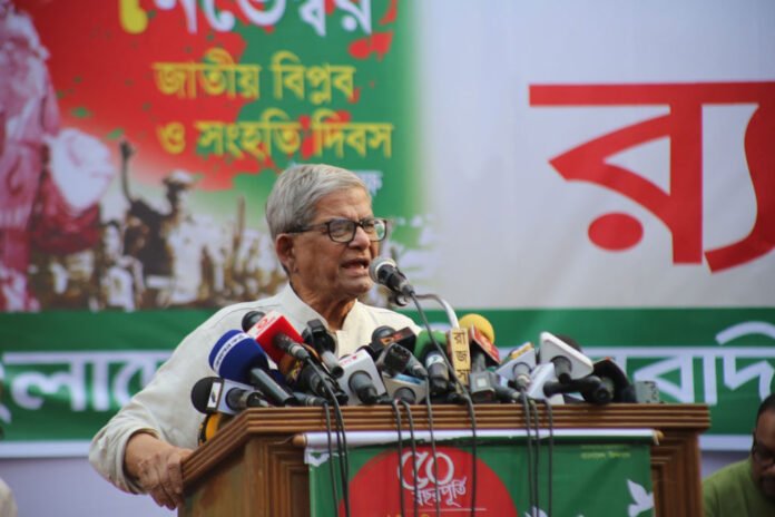 মির্জা ফখরুল বলেন, “একটা রাজনৈতিক দল কয়েক দলের সঙ্গে জোট বানিয়েছে। জোট বানিয়ে তারা চাপ সৃষ্টি করছে—নির্বাচনের আগে গণভোট দিতে হবে। কেন নির্বাচনের আগে দিতে হবে? আলাদা দুটি ভোট করতে গেলে অনেক টাকা খরচ হবে।”