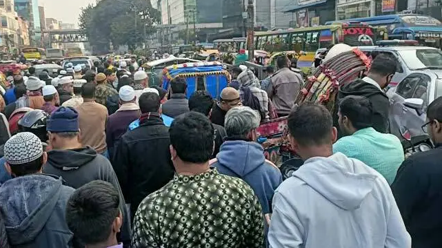 খালেদা জিয়ার জানাজা শেষে হেঁটে ফিরছে লাখো জনতা। সাবেক প্রধানমন্ত্রী ও বিএনপির চেয়ারপারসন খালেদা জিয়ার জানাজায় অংশগ্রহণ শেষে সাধারণ মানুষ নিজ নিজ গন্তব্যে হেঁটে ফিরছে। বুধবার দেশের বিভিন্ন প্রান্ত থেকে লাখ লাখ মানুষ তার জানাজায় শরিক হয়। ভারতীয় আধিপত্যবাদের বিরুদ্ধে বাংলাদেশের আপামর জনতার কণ্ঠস্বর হিসেবে পরিচিত খালেদা জিয়া গতকাল মঙ্গলবার সকালে রাজধানীর এভারকেয়ার হাসপাতালে চিকিৎসাধীন অবস্থায় ইন্তেকাল করেন। স্মরণকালের বৃহৎ এই জানাজা জাতীয় সংসদ ভবনের দক্ষিণ প্লাজায় অনুষ্ঠিত হয়। প্রিয় নেত্রীকে শেষ বিদায় জানাতে ঢাকায় মানুষের ঢল নামে। মানিক মিয়া অ্যাভিনিউ থেকে ফার্মগেট হয়ে প্রায় শাহবাগ মোড় পর্যন্ত জানাজার সারি পৌঁছে যায়, অপরদিকে খামারবাড়ি হয়ে বিজয় সরণি পর্যন্তও মানুষের উপস্থিতি দেখা যায়। দলীয় নেতাকর্মীদের পাশাপাশি ফ্যাসিস্ট ও ভারতীয় আধিপত্যবাদ বিরোধী বিপুলসংখ্যক সাধারণ মানুষ জানাজায় অংশ নেয়। জানাজা শেষে শাহবাগসহ আশপাশের এলাকায় যানবাহন না থাকায় লাখো মানুষ হেঁটেই নিজ নিজ কর্মস্থল ও গন্তব্যের দিকে রওনা দেন।