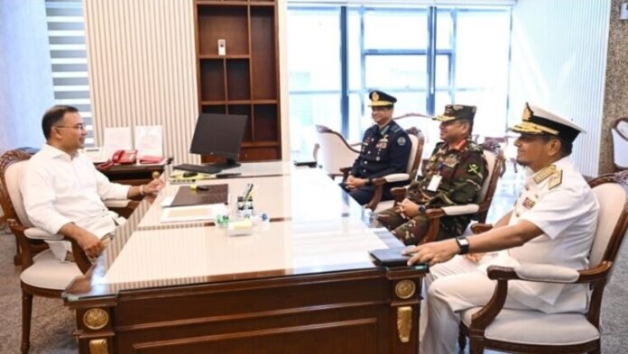 দ্বিতীয় দিনের মতো কার্যালয়ে দায়িত্ব পালন করছেন প্রধানমন্ত্রী তারেক রহমান। বৃহস্পতিবার সকালে তিনি প্রথমে এনএসআই ও ডিজিএফআইয়ের মহাপরিচালকের সঙ্গে পৃথক বৈঠক করেন। পরে সেনা, নৌ ও বিমান বাহিনীর প্রধানদের সঙ্গে বৈঠকে বসেন তিনি। বেলা সাড়ে ১১টায় ‘ফ্যামিলি কার্ড’ চালুর লক্ষ্যে কর্মপরিকল্পনা চূড়ান্তকরণ সংক্রান্ত আন্তঃমন্ত্রণালয় সভায় যোগ দেন প্রধানমন্ত্রী। দুপুরে আবারও একটি আন্তঃমন্ত্রণালয় সভায় অংশ নেওয়ার কথা রয়েছে তার। ওই সভায় আগামী পাঁচ বছরে ২৫ কোটি বৃক্ষরোপণ কর্মসূচি এবং জাতীয় পর্যায়ে নদী, খাল ও জলাধার খনন ও পুনর্খনন পরিকল্পনা নিয়ে আলোচনা হবে।