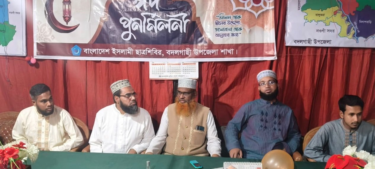 নওগাঁর বদলগাছী উপজেলায় অত্যন্ত আনন্দঘন ও উৎসবমুখর পরিবেশে বাংলাদেশ ইসলামী ছাত্রশিবির, বদলগাছী থানা শাখার উদ্যোগে ‘ঈদ পুনর্মিলনী’ অনুষ্ঠিত হয়েছে। বর্তমান ও সাবেক দায়িত্বশীলদের স্বতঃস্ফূর্ত অংশগ্রহণে অনুষ্ঠানটি এক বিশাল মিলনমেলায় পরিণত হয়।