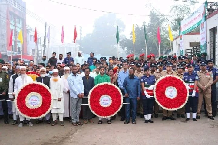 এরপর জেলা প্রশাসন, শেরপুরের পক্ষ থেকে জেলা প্রশাসক ও বিজ্ঞ জেলা ম্যাজিস্ট্রেট তরফদার মাহমুদুর রহমান শেরপুর শহরের শহিদ মুক্তিযোদ্ধা স্মৃতিস্তম্ভে পুষ্পস্তবক অর্পণ করেন।