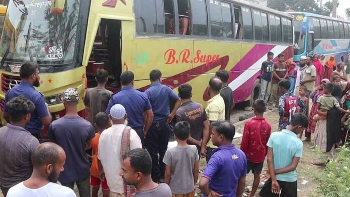নওগাঁয় গ্যারেজে থাকা বাসের ভেতর থেকে জাহিদ ইসলাম (২২) নামে এক যুবকের মরদেহ উদ্ধার করা হয়েছে। মঙ্গলবার (৩১ মার্চ) বেলা ১১টার দিকে শহরের বাইপাস বরুণকান্দির মোড়ে গ্যারেজে রাখা এক বাস থেকে মরদেহটি উদ্ধার করা হয়। নওগাঁ সদর থানার ভারপ্রাপ্ত কর্মকর্তা (ওসি) তদন্ত খোরশেদ আলম বিষয়টি নিশ্চিত করেছেন। জাহিদ ইসলাম জেলার মান্দা উপজেলার তুলশীরামপুর গ্রামের মৃ’ত ইব্রাহিমের ছেলে। তিনি বি. আর. সুপার পরিবহন বাসের হেলপার হিসেবে কাজ করতেন। স্থানীয় ও পুলিশ সূত্রে জানা যায়, প্রায় এক বছর ধরে জাহিদ ইসলাম বি.আর.সুপার পরিবহন বাসে হেলপার হিসেবে কাজ করতেন। ওই বাসটি মেরামতের জন্য সোমবার সকালে বরুনকান্দি মোড়ে কালুর গ্যারেজে নিয়ে আসা হয় এবং সেখানে ইঞ্জিনের কাজ করা হচ্ছিল। রাতে খাবার খেয়ে আরেক সহকর্মী ইউসুফের সঙ্গে বাসের ভেতরেই ঘুমিয়ে পড়েন জাহিদ। সকালে ইউসুফ তাকে ঘুম থেকে উঠার জন্য অনেকবার ডাকাডাকি করেন। কিন্তু তার কোনো সাড়া পাওয়া যায়নি। পরে বিষয়টি থানা পুলিশকে জানানো হলে পুলিশ ঘটনাস্থল থেকে মরদেহ উদ্ধার করে। নওগাঁ সদর থানার ওসি (তদন্ত)খোরশেদ আলম বলেন, সংবাদ পেয়ে ঘটনাস্থল থেকে মরদেহ উদ্ধার করে ময়নাতদন্তের জন্য সদর হাসপাতাল মর্গে পাঠানো হয়েছে। ঘটনাটি তদন্ত করে দেখা হচ্ছে। ময়নাতদন্তের রিপোর্ট পেলে মৃত্যুর সঠিক কারণ জানা যাবে।