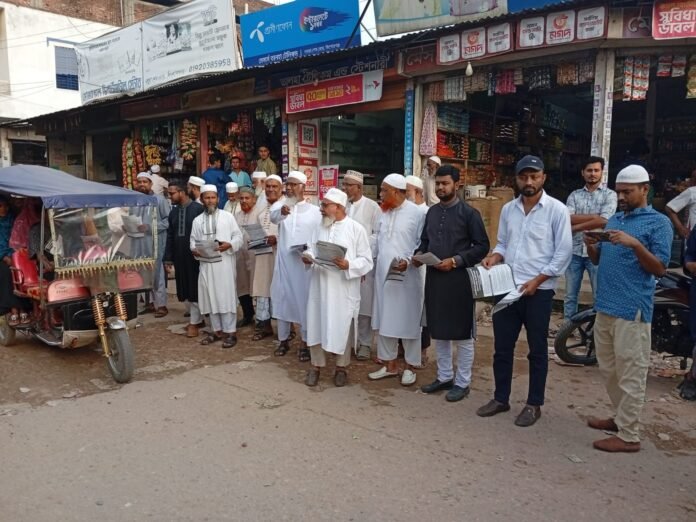 বৃহস্পতিবার (৯ এপ্রিল) বাদ আসর কিশোরগঞ্জ শহরের নগুয়া শেষ মোড় মসজিদের সামনে থেকে কর্মসূচি শুরু হয়। পরে নগুয়া এলাকার বিভিন্ন স্থান ও বাসস্ট্যান্ডে সাধারণ মানুষের মাঝে লিফলেট বিতরণ করেন ১১ দলীয় ঐক্যের জেলা শাখার নেতাকর্মীরা।