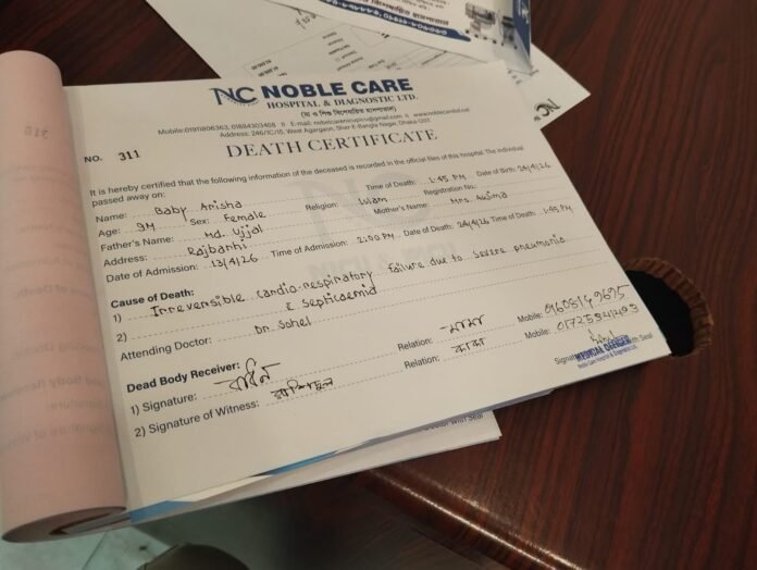 শিশুটির পিতা উজ্জল ফকির জানান, প্রায় এক মাস আগে তার মেয়ে হাম-রুবেলা রোগে আক্রান্ত হলে প্রথমে তাকে গোয়ালন্দ উপজেলা স্বাস্থ্য কমপ্লেক্সে ভর্তি করা হয়। পরে অবস্থার অবনতি হলে ফরিদপুর মেডিকেল কলেজ হাসপাতালে নেওয়া হয়। সেখানেও অবস্থার উন্নতি না হওয়ায় তাকে ঢাকা মেডিকেল কলেজ হাসপাতালে স্থানান্তর করা হয়। সেখানে প্রায় দুই সপ্তাহ চিকিৎসাধীন থাকার পর তার মৃত্যু হয়।